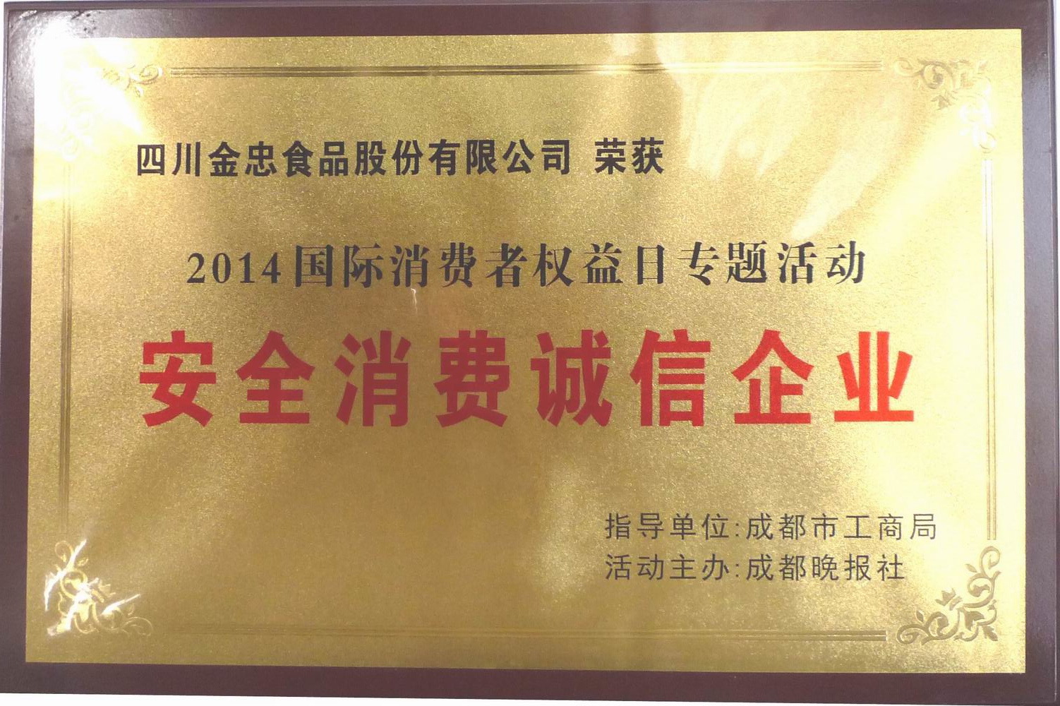 安全消費(fèi)誠(chéng)信企業(yè)證書(shū)