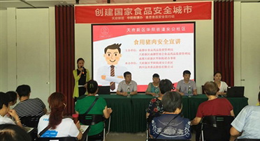 為推進(jìn)成都創(chuàng)建國家食品安全城市工作的深入開展,普及食品安全知識,提高廣大消費(fèi)者食品安全意識由天府新區(qū)成都管委會食品藥品監(jiān)督管理局和成都天府新區(qū)華陽街道辦事處共同主辦,天府新區(qū)華陽街道安公社區(qū)和四川金忠食品股份有限公司聯(lián)合承辦的“成都創(chuàng)建國家食品安全城市走進(jìn)社區(qū)宣傳活動”,于2016年8月10日上午9時(shí)30分,在華陽音樂廣場舉行。成都市食藥監(jiān)局、華陽街道等相關(guān)單位部門負(fù)責(zé)人、媒體記者,以及現(xiàn)場市民共同參與,見證了本次活動。